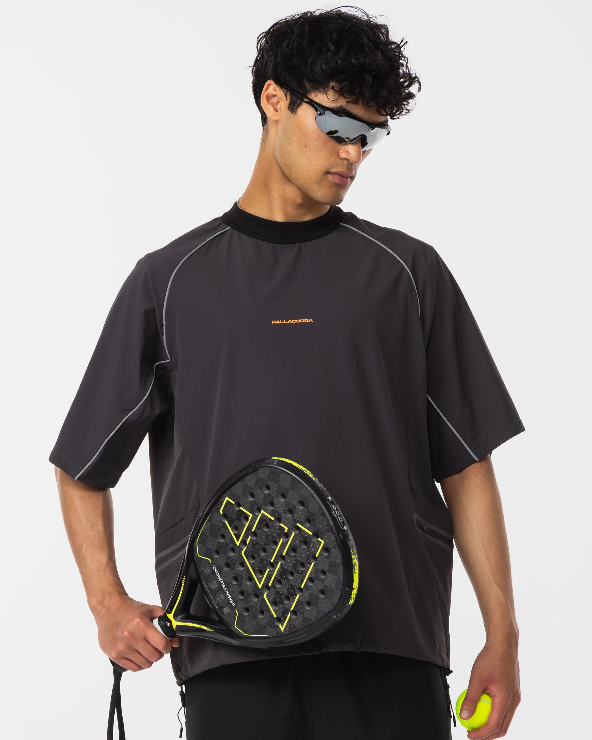 The Pallacorda Mens Padel Midlayer - Drill Shell Top is made for players who bring serious intent to the court. With an oversized fit, adjustable waist, and bold reflective detailing, this lightweight layer is engineered for match prep, warm-ups, and standout post-match style.